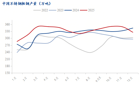 In the fourth quarter, the overall domestic crude stainless steel output dropped month-on-month. This was mainly due to seasonal factors: as temperatures gradually cooled, outdoor projects in northern China successively entered the winter shutdown period and extended southward, directly weakening the demand for stainless steel and leading to a corresponding reduction in output.